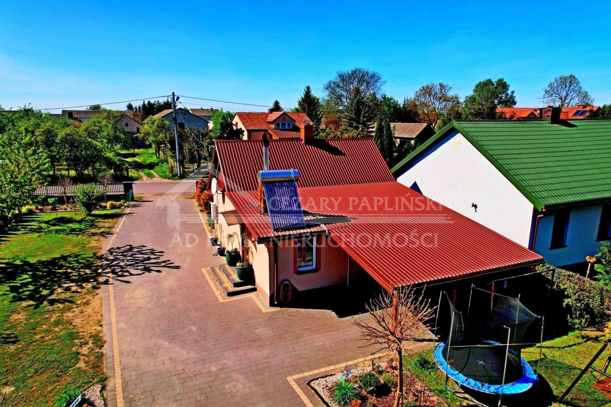 Dom po gruntownej modernizacji w 2016 roku - klimatyzowany, elewacja oraz poddasze ocieplone styropianem i wełną, wymienione zostało: poszycie dachu - blachodachówka, stolarka okienna plastikowa, nowa instalacja elektryczna i wod-kan. Na działce znajduje się staw, urządzony ogród, ogród zimowy z poliwęglanu o pow. 18 m2, piwnica kopułowa oraz garaż blaszany i budynek gospodarczy.