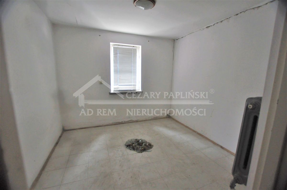 Dom ma 80 mkw., 2 pokoje, kuchnia, łazienka z wanną i wc, woda zimna z wodociągu, podgrzewana boljerem elektrycznym, ogrzewanie centralne zasilane z kuchni kaflowej. Na podłodze terakota i deski. Drzwi drewniane, okna drewniane i dach- do wymiany.